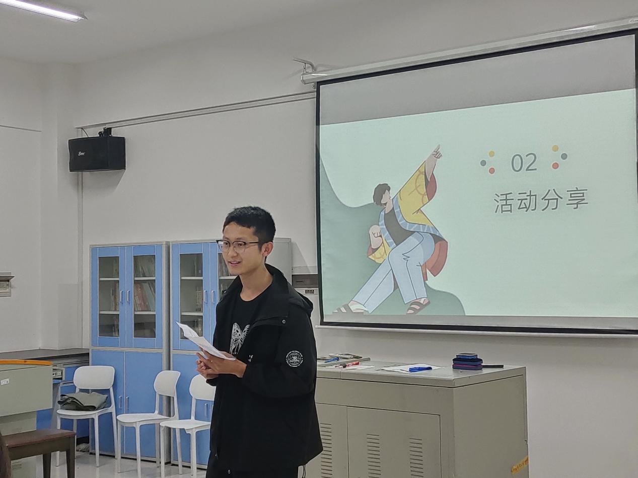 随后,上一届“先行者”优秀成员代表同学苑伊达现场发言,分享了自己参与第三届活动的成长故事。他结合科普答题、慢跑打卡的亲身经历,生动讲述了在31天坚持中收获的心理韧性与健康习惯,另一位优秀成员——来自齐白石艺术学院23级美术学三班曾佳泉则以“一场心理的学习之旅”为主题,通过演示文稿为在场师生提供了小程序操作、打卡技巧等实用建议,让大家对活动开展有了更具象的认知。
