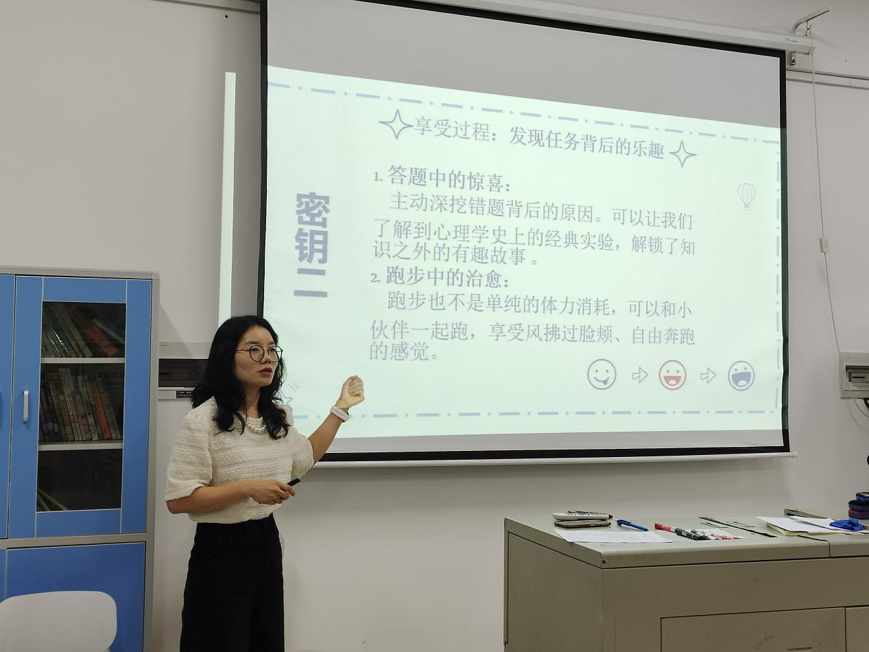 罗贝贝老师现场详细解读活动框架,她表示本次活动以“五育并举,强健身心”为核心,贯穿“启动仪式、31天打卡、心理公开课、总结研讨会”四大板块。其中,她重点阐述了参与31天打卡活动的要求,同时融入“感悟红色经典、传统寻美之旅、体会非遗传承”三项特色活动,旨在以文化浸润助力心理成长。